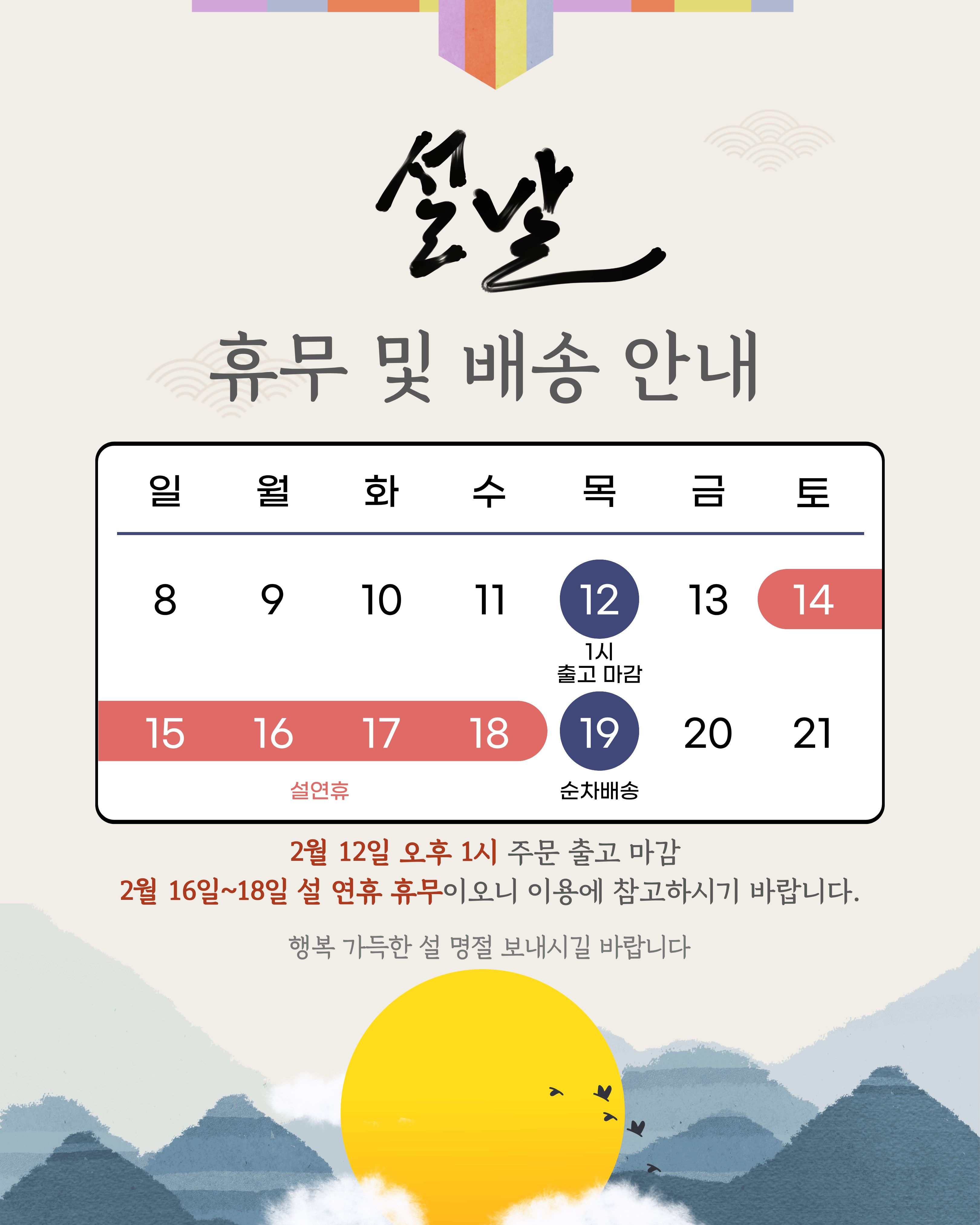 2026 설 연휴 배송 및 기관 휴무 안내 |