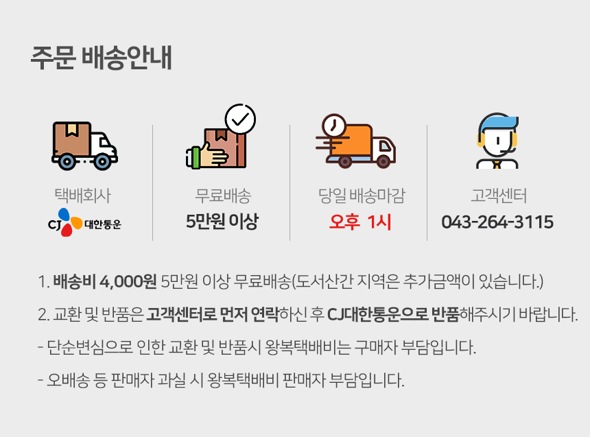 • - 도서지역은 2~4일 지연될 수 있으며 배송비가 추가 될 수 있으니 이 점 양해하여 주시기 바랍니다.